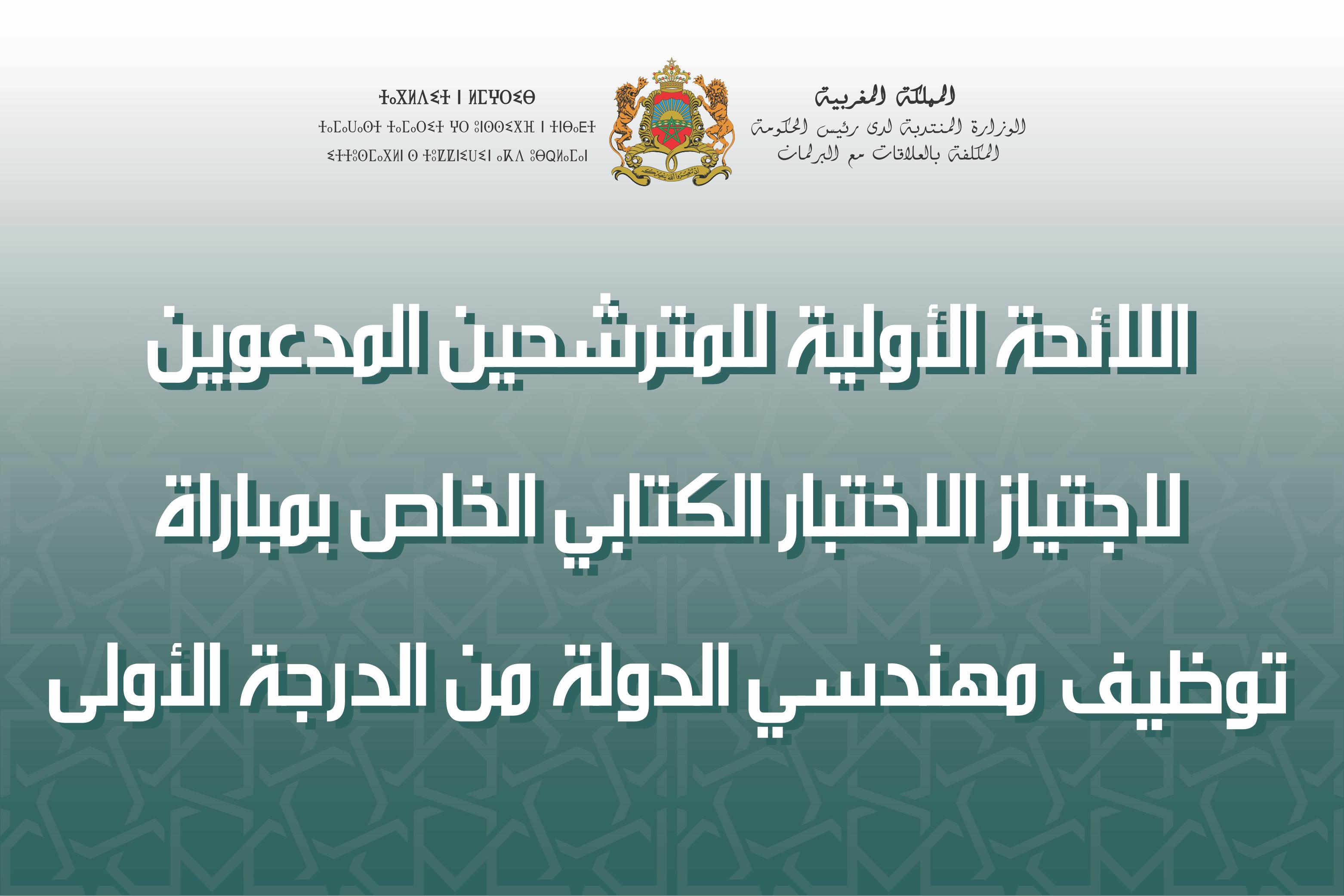 اللائحة الأولية للمترشحين المدعوين لاجتياز الاختبار الكتابي الخاص بمباراة توظيف مهندسي الدولة من الدرجة الأولى