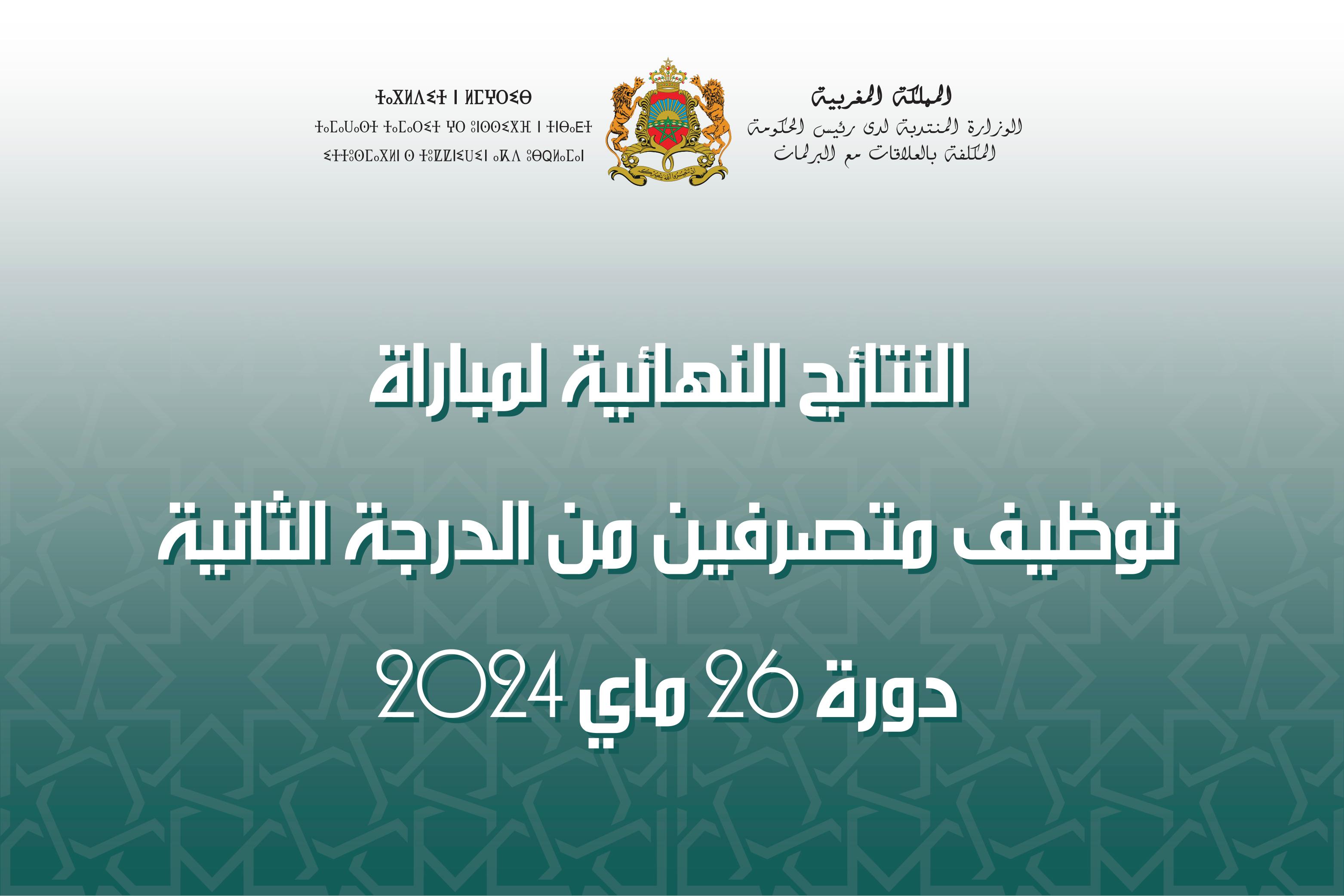 النتائج النهائية لمبارة توظيف متصرفين من الدرجة الثانية دورة 26 ماي 2024
